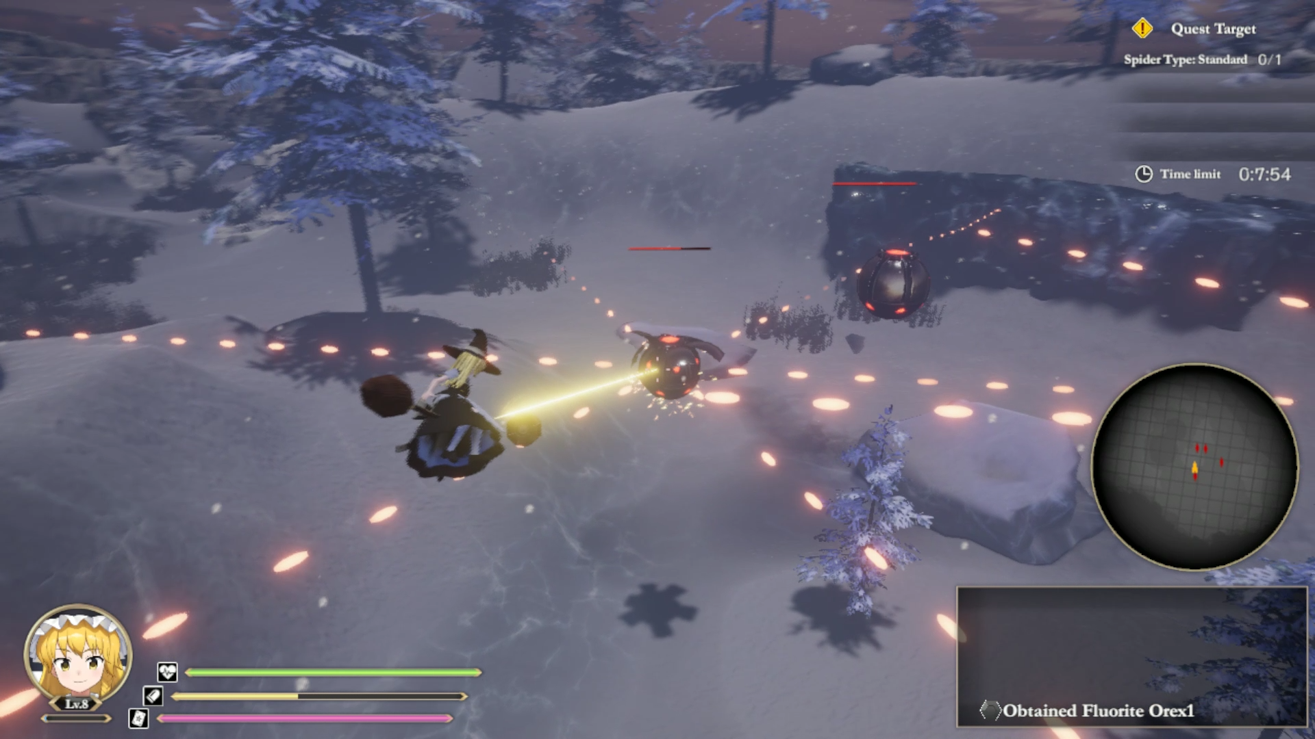 Fly freely through the air as Reimu or Marisa and hunt down humongous foes while gracefully weaving through hundreds of 3D danmaku attacks! Touhou Mechanical Scrollery combines hunting action with bullethell for something completely new to the Touhou series!