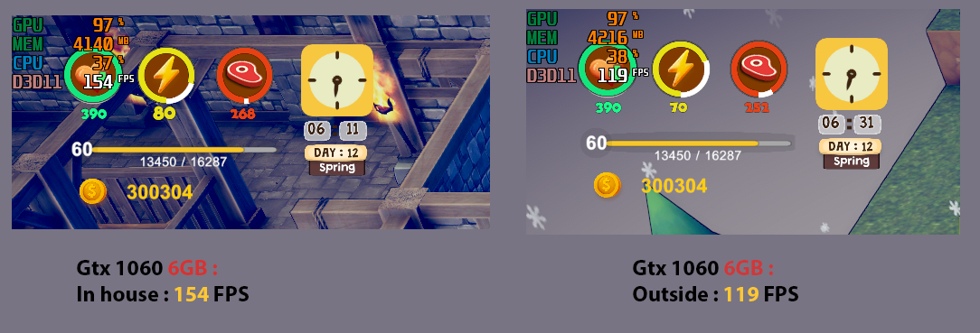 Tested VGA 1060 6G : 154 FPS (in house) - and 119 FPS ( in farm )