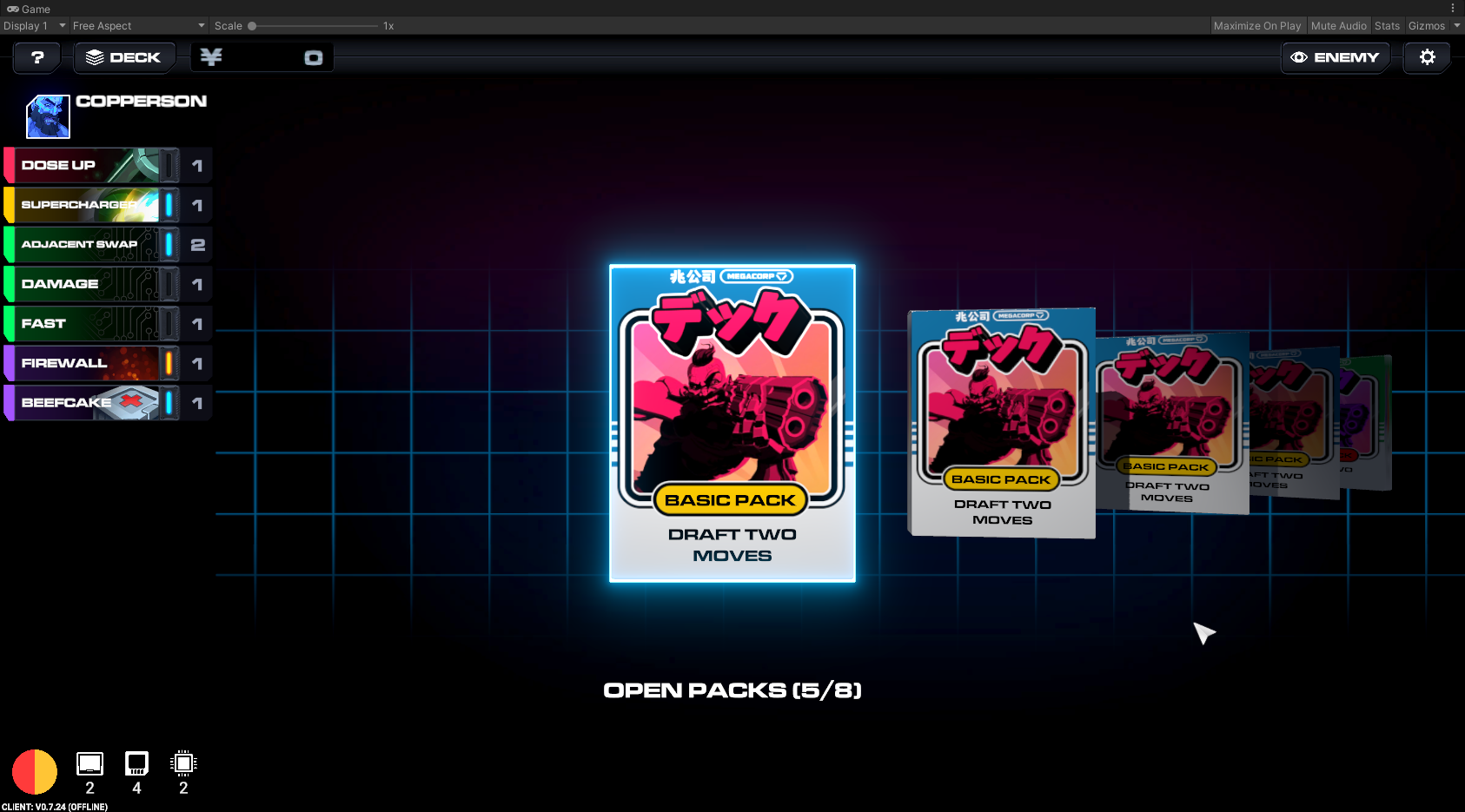 When you open a basic pack, you get to pick 2 moves out of 6. Each pack is guaranteed to have at least one move of each color, and a certain rarity distribution. There is also a karma system working in the background, which increases the likelihood of getting a rare card the more packs you have opened without seeing one.