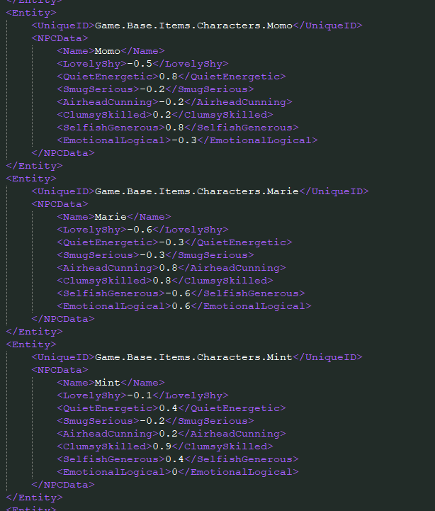 We started setting up the personality properties of each girl, the AI system will use these to give them different reactions to each situation. But right now these are just used to choose the mood icon.