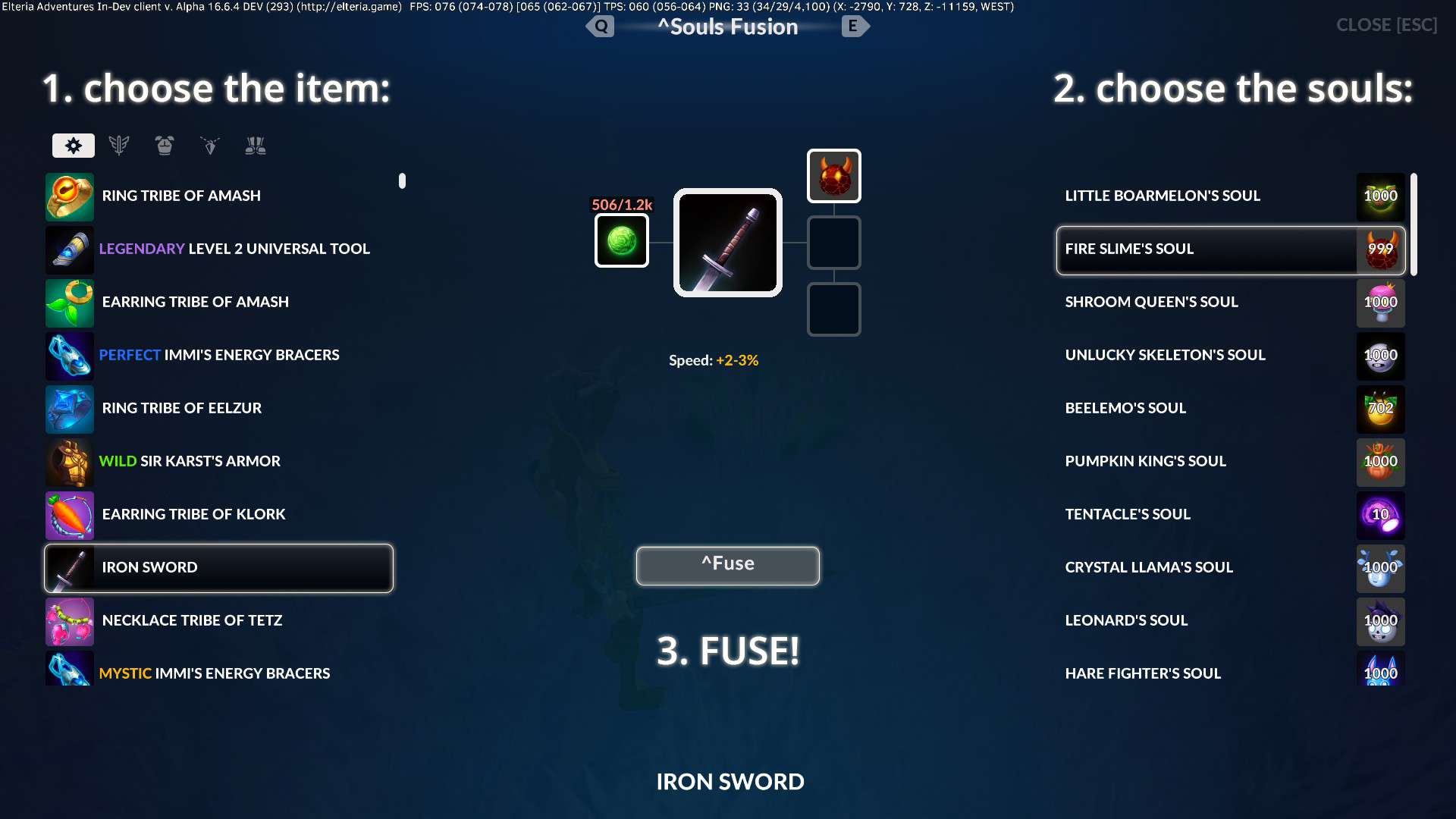 The soul of the blade. Added the Soul Fusion mechanics. Build (or ask a friend for an access to) an object called Soul Fusion Altar, and you’ll be able to use it to put up to three different souls that you have in your inventory into an item of equipment, giving it secondary passive abilities. This works similarly to Reforge (just without the randomness), and absolutely can be combined with that mechanic AND item Rarity in order to create equipment that is absolutely monstrous in its power.