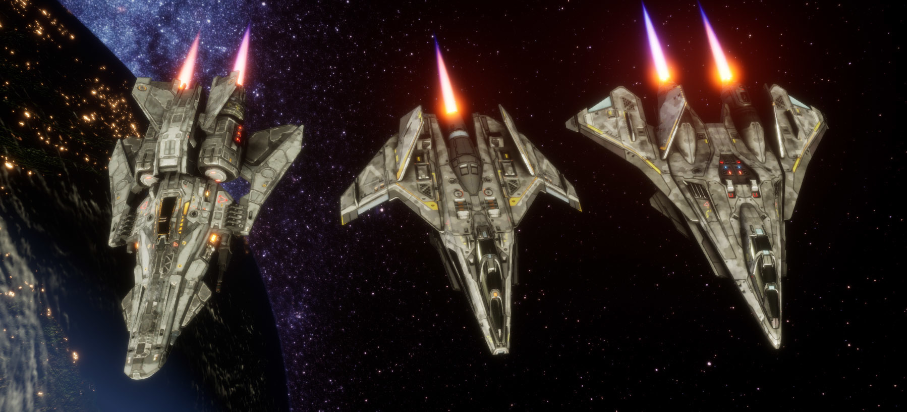Along with refitting the backend, there are some new visuals that I am willing to showcase. As a bonus for everyone waiting so long for the release, we've decided to include 2 new bonus craft to the game for everyone to enjoy. I'd like to introduce you to the new Hoplite fighter and Myrmidon heavy fighter.