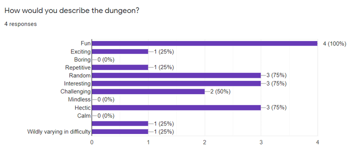 Plus we picked a few Kickstarter backers to take a stab at the game (heh) in a very closed beta test and questionnaire. We will open up to more testers in the coming weeks on the Discord, so do join us there if you're interested, but in the meantime I thought you might be interested to see the dungeoneering feedback in particular: