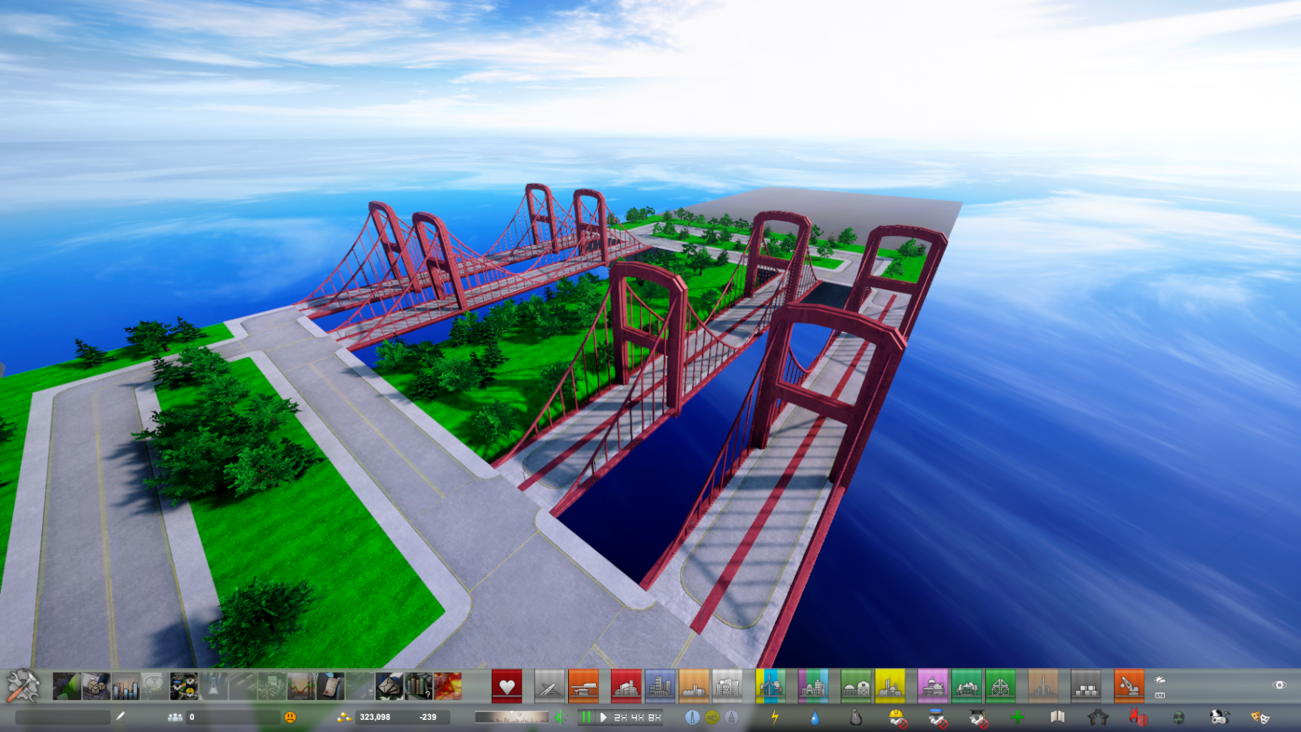 New bridges! This is a more classical look - a golden gate bridge type. There's also a new bridge with a more futuristic look being added - but that one is not quite finished yet.