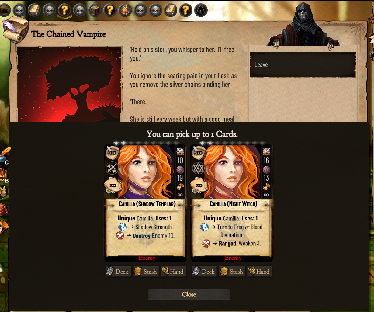 Of course, in our game, the characters don’t move physically. However, the new angle feels more intuitive, and it’s a design choice similar to those in some other card games and roguelikes.