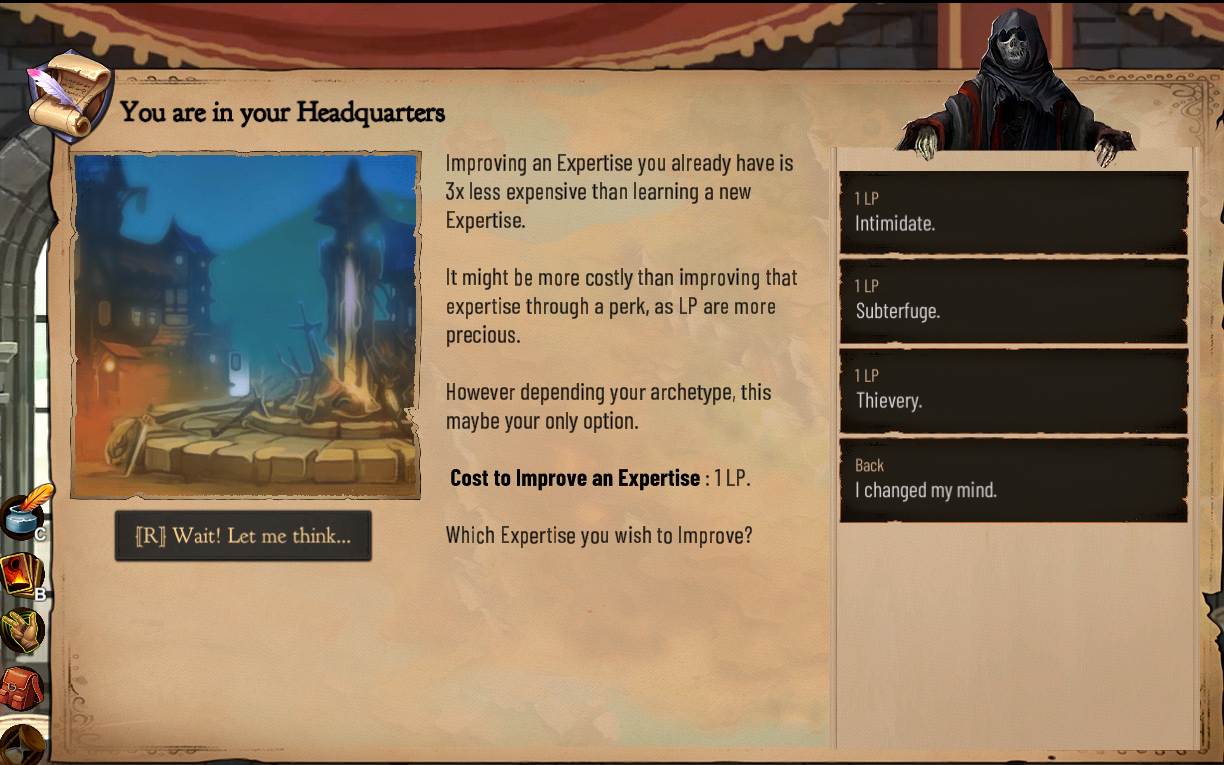 Each class in the game starts with 3 of them. You will be able to learn more using your Headquarter's (or Hideout) library. Having these fields of expertise will provide you additional choices in various events, certain cards that require them etc.