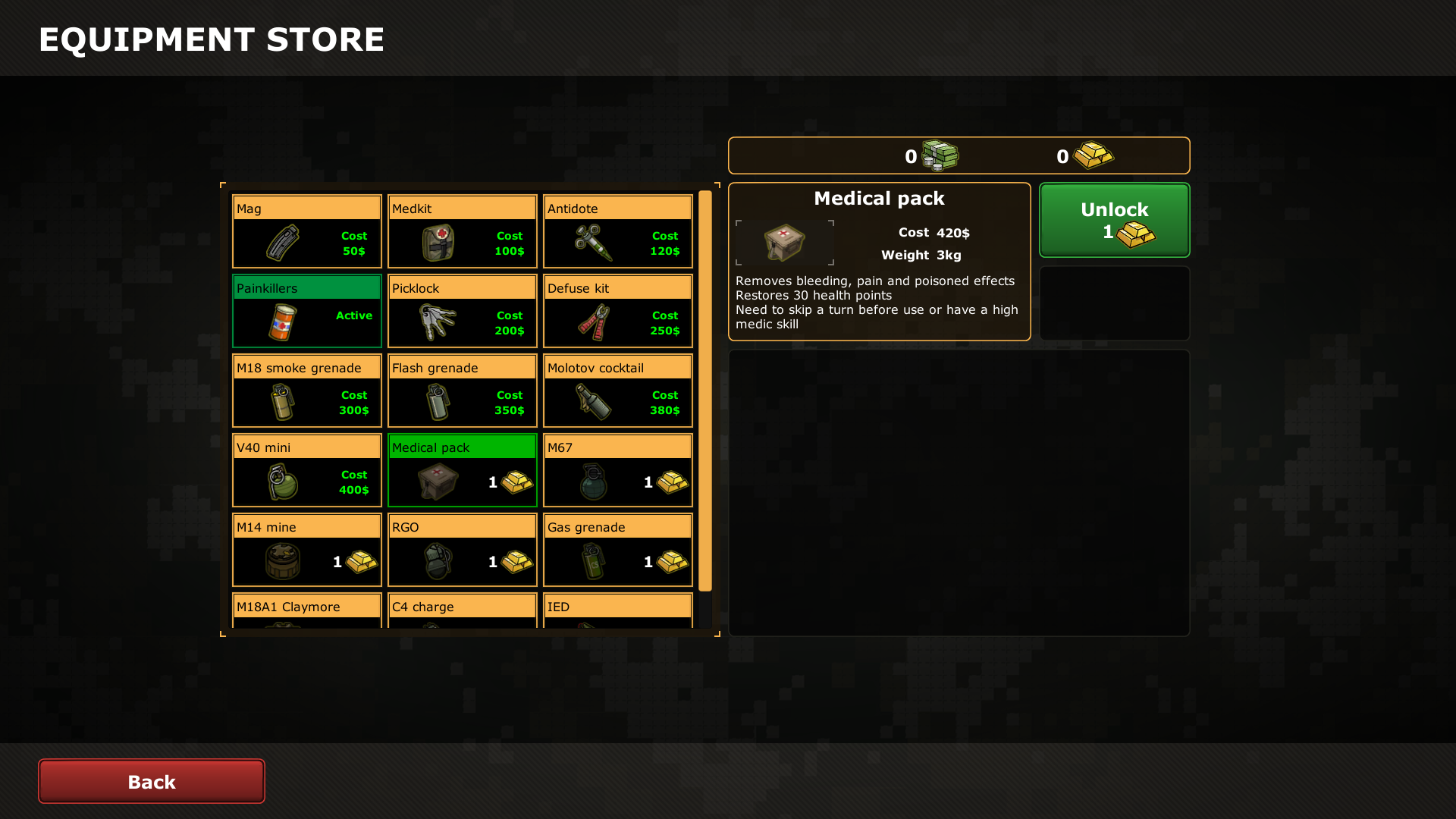 Part of the items now is locked initially. To unlock them you need to pass missions and earn medals.