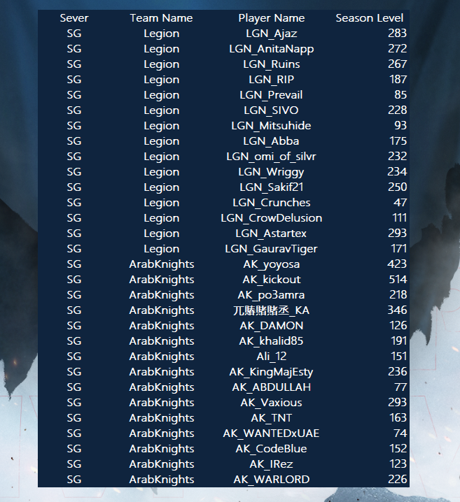 Hello Warlords: Thank you all for your support of Conqueror's Blade League. As per the signup rules, The squads that will take part in Conqueror's Blade League's MN Division are as follows: