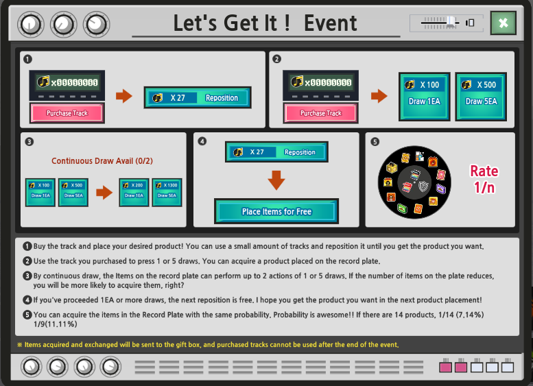Let's get it Event is now open! Purchase track now and draw random rewards. You will have a chance to get awesome rare items!