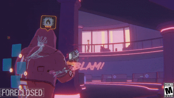 There’s a few different ways that we bring the comic book aesthetic into FORECLOSED; A classic trope of comics is action words & sound effects in big and bold lettering, and we wanted to reflect that in the action sequences of the game.