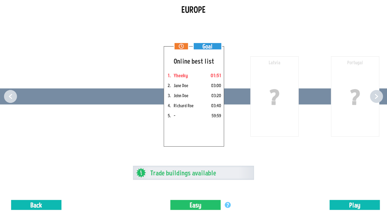 A new item from the Mini Countries road map has been completed! Today I just released the version 1.2 update with the online best time feature.