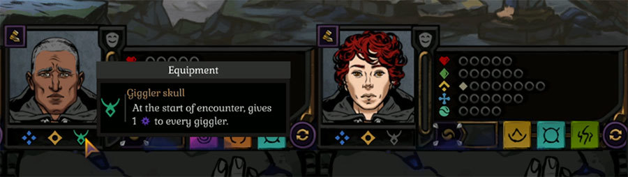 The same change is also reflected with the icons underneath character portraits in encounters and in the travel mode. From left to right under each portrait, the icons correspond to temporary effects, permanent effects and equipment.