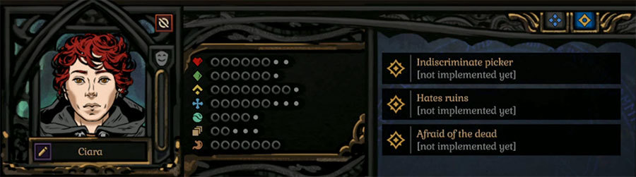 In the time that remains of this week, we'll do our best to further improve the encounter flow and the alchemic cauldron screen. Meanwhile, one of us is already working hard on introducing mood and mood traits into the game with version 187.