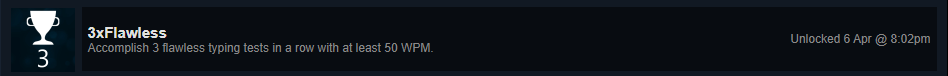 Flawless Achievments There is a bug that the flawless achievements are triggered properly but not acknowledged by Steam. A typo on my side caused this. Version 1.0.5 addresses this issue and will scan through your save game and should trigger the achievement synchronisation.