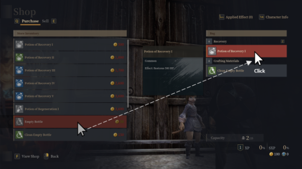 Ex) In the previous CBT, users had to switch windows using a separate keyboard button in order to check their bag status in the store UI. In this update, improvements have been made so that users can easily switch windows with a simple mouse click.
