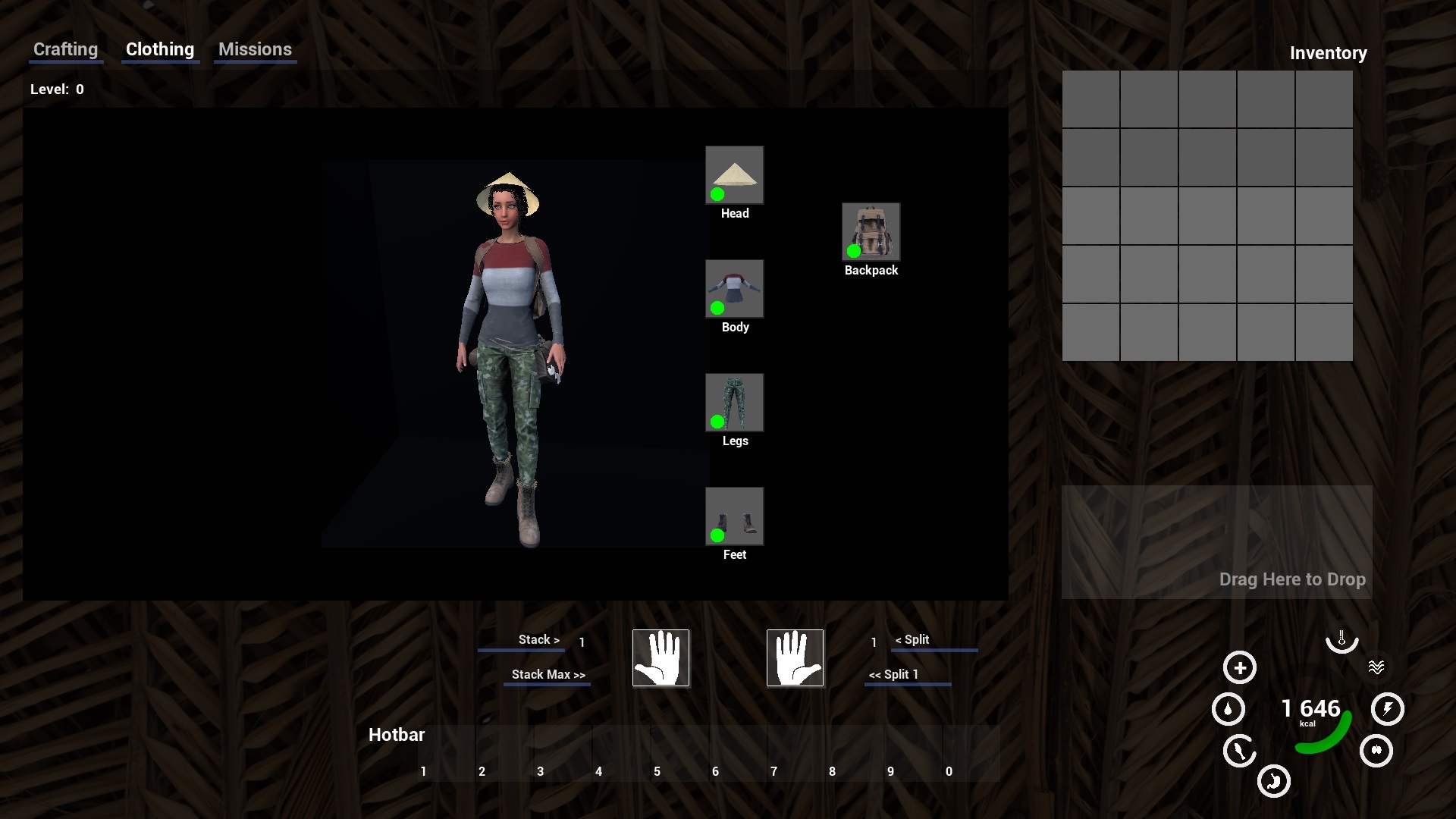 I plan to add some more functionality: - improvised backpack - raw animal skin - leather stretcher - more clothing - showroom character rotation