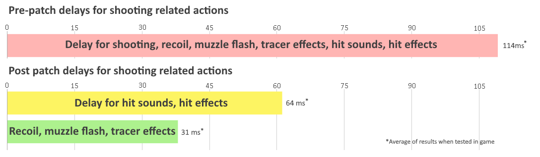 Another major component of the update is the improvement to gun feel, via large reduction in delay for shooting inputs and feedback. This also improves recoil feel as the clients shots and servers shots are lined up with the recoil timings, allowing for rapid fire to correctly be registered on the server.