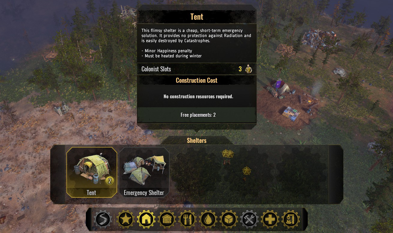 After placing the Campsite, you are also able to place some prefab buildings to your colony.