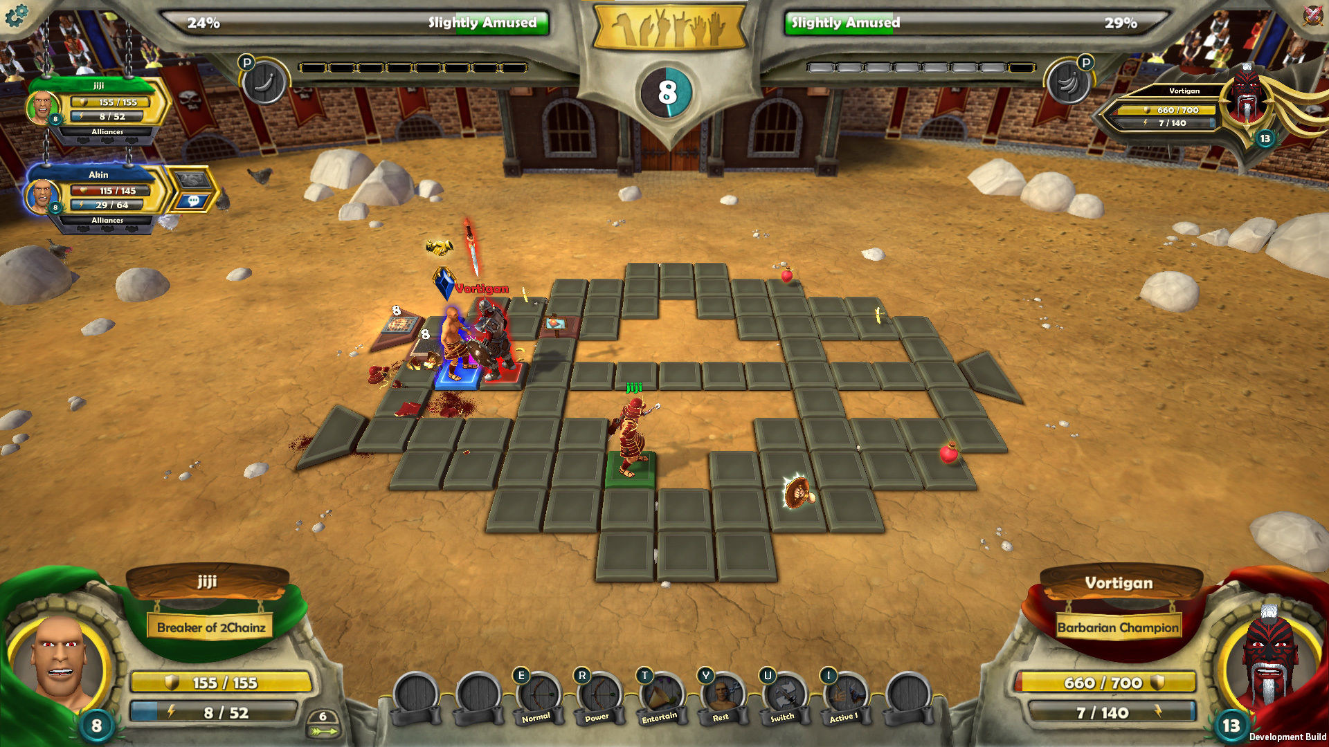 Boss battles - Team up with another warrior to fight against mighty and deadly bosses. They are strong, have special skills, and it will take both of your efforts to bring them down. Each boss has 4 tiers of difficulties. the higher the tier - the greater the rewards. Bear in mind that death here is permeant, so enter at your own risk. The first boss is Vortigan - Barbarian Champion. Equipped with "Royal Flush" and "Man of the people" skills, gains more crowd bars than a regular warrior and can strike both enemies with "Rally the crowd" action in one turn. On tier 4, the time is ticking as Vortigan will unleash his digested lunch before you even sneeze, causing you and your ally to receive damage every turn for the entire battle.