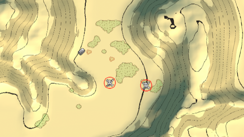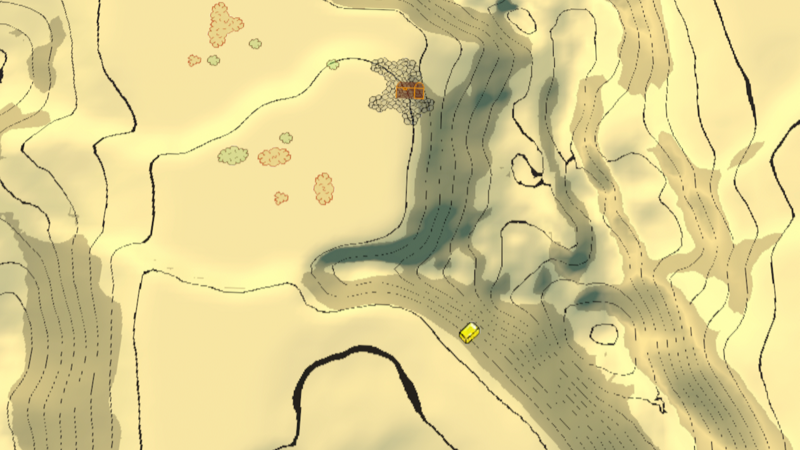 Resources like trees, rocks that can be broken for stone, fruit trees, etc. are represented as icons on the map to help you get a better understanding of the land and what it has to offer. Resources that spawn randomly will also be shown in this way, e.g. fruit trees, so you will automatically see their locations if you or one of your scouts have gotten close enough (Today's main image shows an area with forest, some fruit trees, and some rocks).