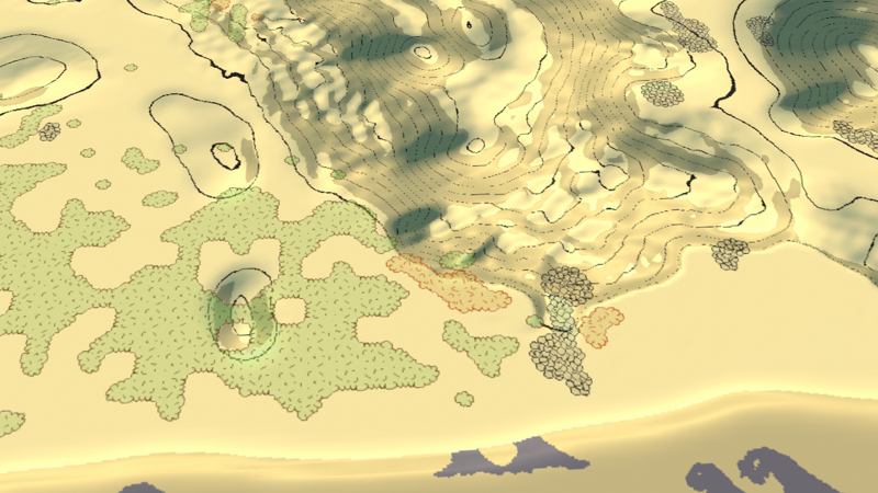 A more important thing to discover, however, are the ore veins across the island. At the moment, we have rock, iron, gold, and gem veins, and finding one of them can seriously influence decisions about the location of players’ expansions, what type of goods they will produce, or where they choose to defend. Considering their importance, we wanted to not simply have the type of ore vein revealed as your scouts track across the world, but instead, scouts will only reveal that there *is* a type of mineral vein in a location. Once such a location has been marked, the player can visit the location themselves, discovering what type of vein they have found, and make a decision about what to do with it.