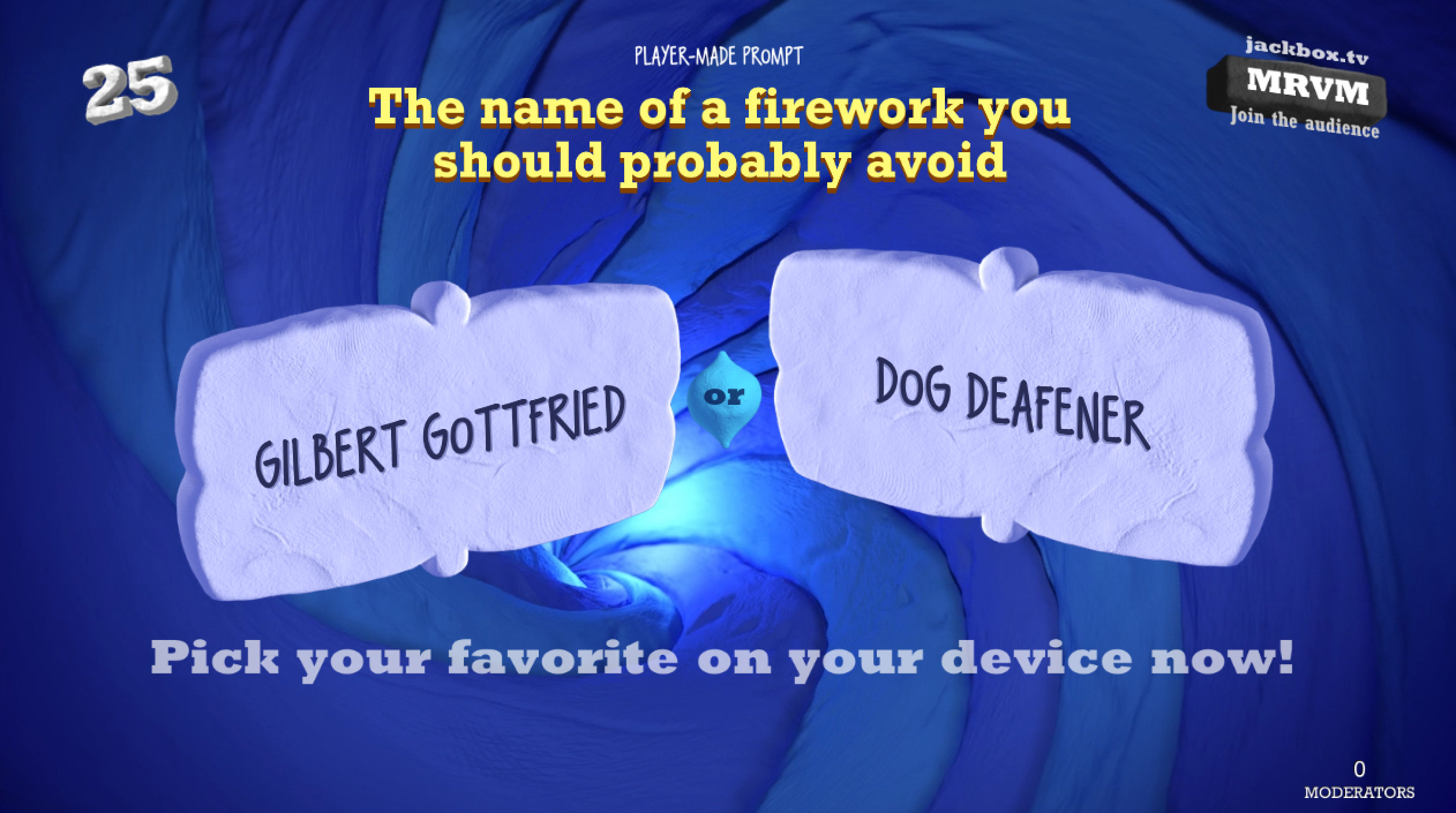 Introducing our most recent custom episode, here just in time to celebrate the Fourth of July! This custom episode features a range of questions from The US of A. This custom episode for Quiplash 3 is also available to our international friends, so test your knowledge today by updating your copy of The Jackbox Party Pack 7 look for “Fourth Laughter” in the Featured Content submenu.