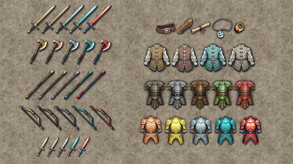 Villagers can now craft Weapons, Armors and Accessories. Each character can equip one of each type to gain various improvements to their stats. A character can only equip a limited number of type of weapon or armor based on their Class (ex: Mages can only equip Staves). Do note that once equipped, an Equipment can no longer be unequipped manually by that Villager and