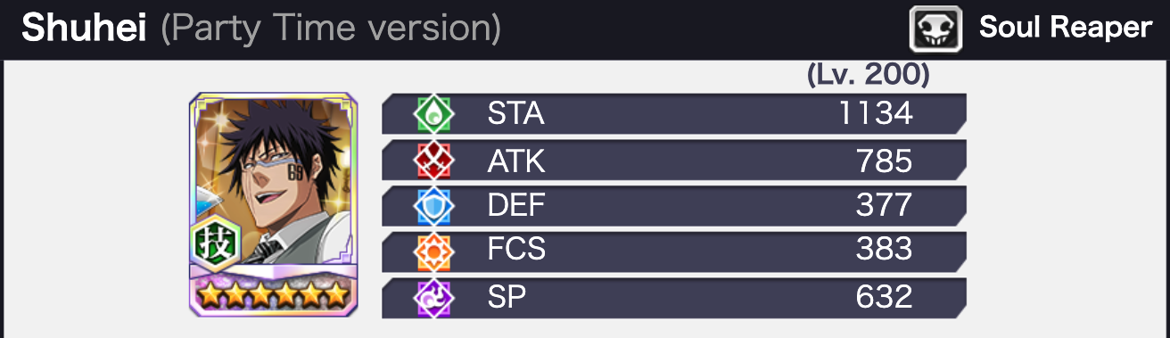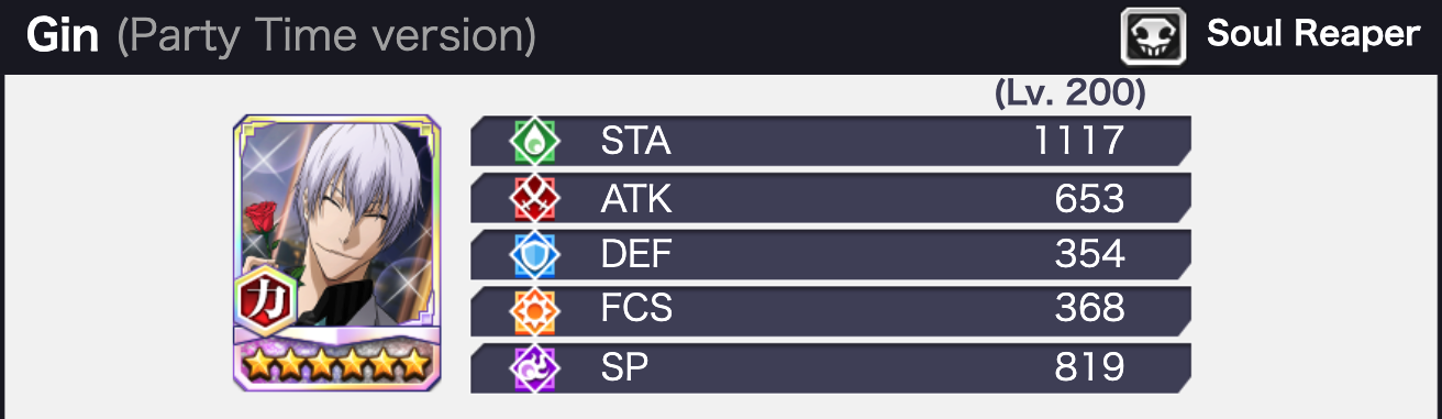 Attack type: Ranged normal attack All attacks: Slow New Innate Skill: Chance to inflict Slow every 5 seconds New Innate Skill: Dodge Hollow Damage 50% New Skill: (Team/Party) Technique Attribute Soul Reaper Normal Attack Damage +20% New Skill: Ranged Damage +10% (+30% in Guild Quests)