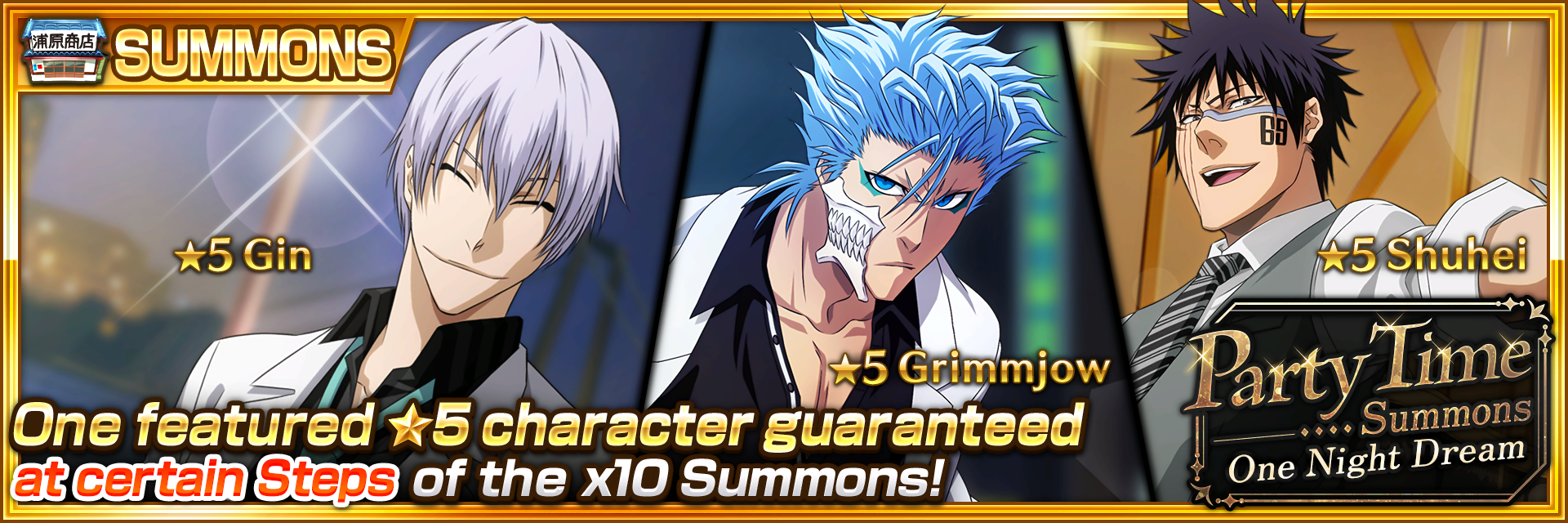 New Party Time version characters are here! The draw rate for featured ★5 characters in this Summons is 4.5% and 1.5% for all other ★5 characters. The x10 Summons guarantees one featured ★5 character every five Steps until Step 25.