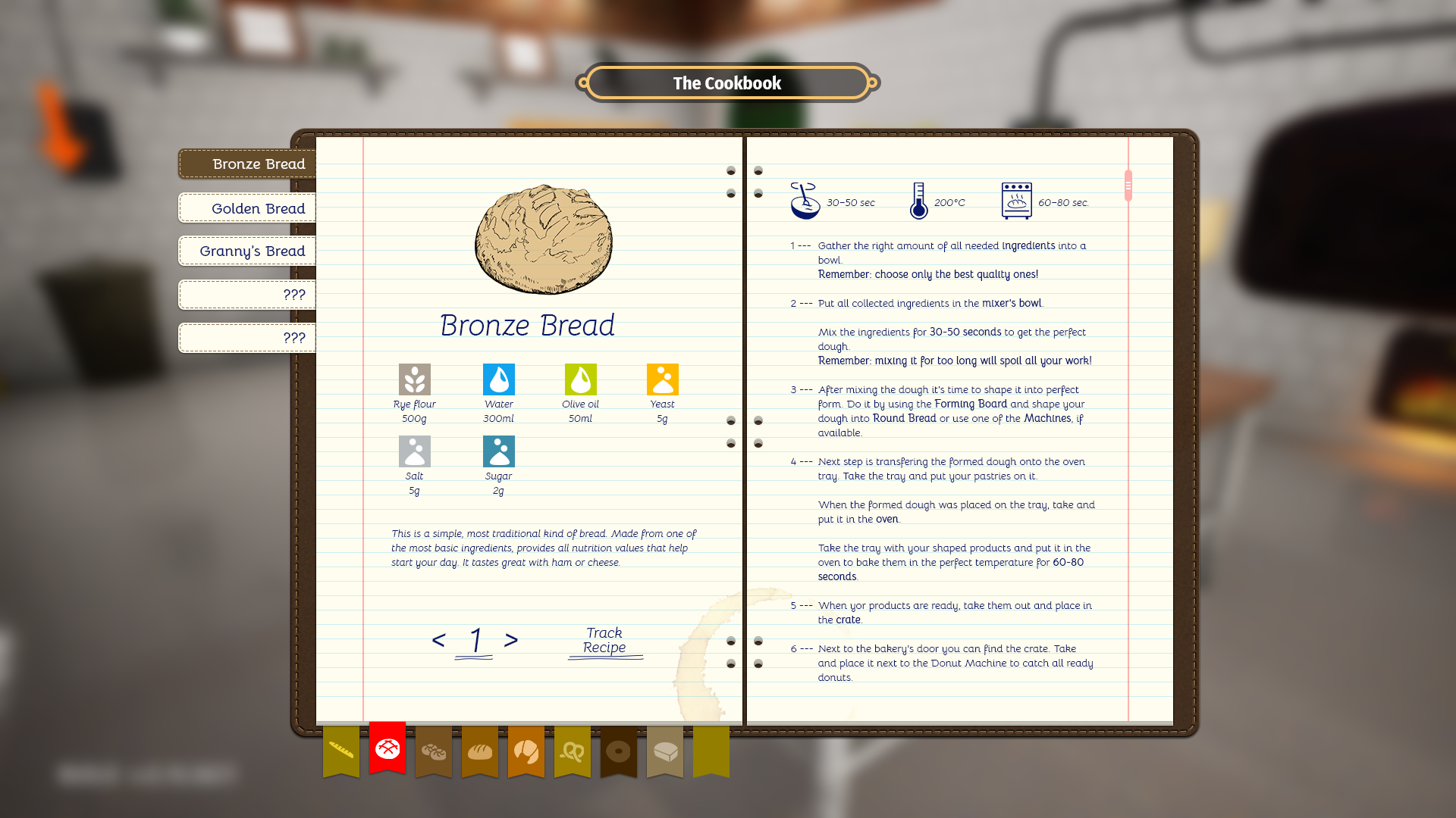 Even the Cookbook will go through some changes. As we want to simulate a nicely looking real-life cookbook all of you that enjoy writing in your own notebooks might feel at home seeing its look right now. It will neatly group all the important information in particular sections together with icons and bookmarks that you will be able to click in order to learn more about a particular type of bread.