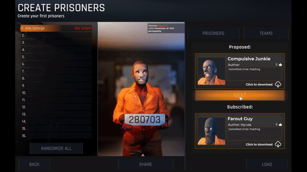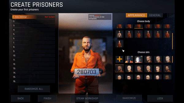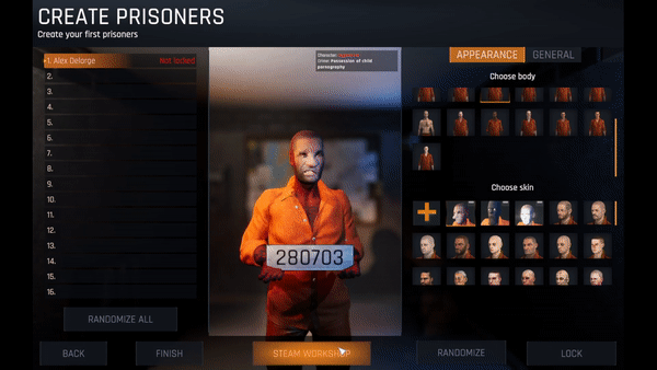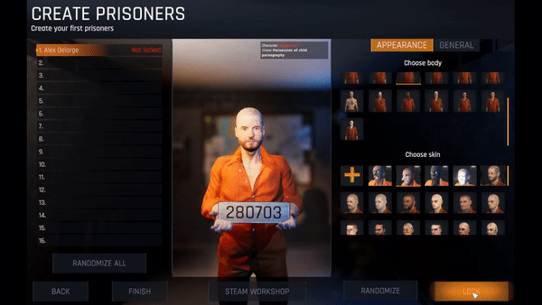 But if you dont wanna edit every prisoner try hit "Randomize" button. The game will create something for you!