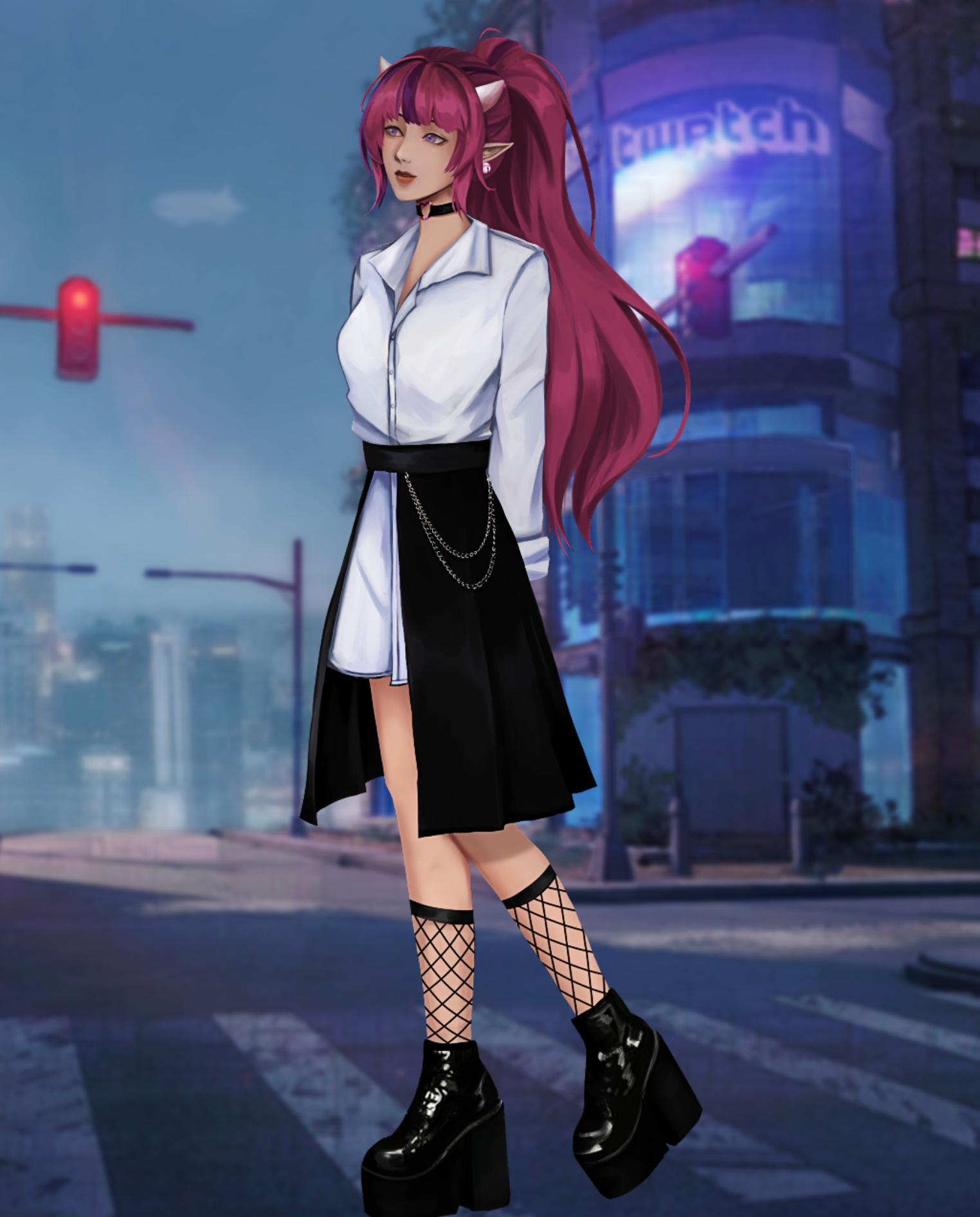 Yes Szycrotic is in the demo. Maybe not THIS outfit! XD This outfit is going to be in the Twitch and Hentai Routes for Asterella Star, hence the censor tape.