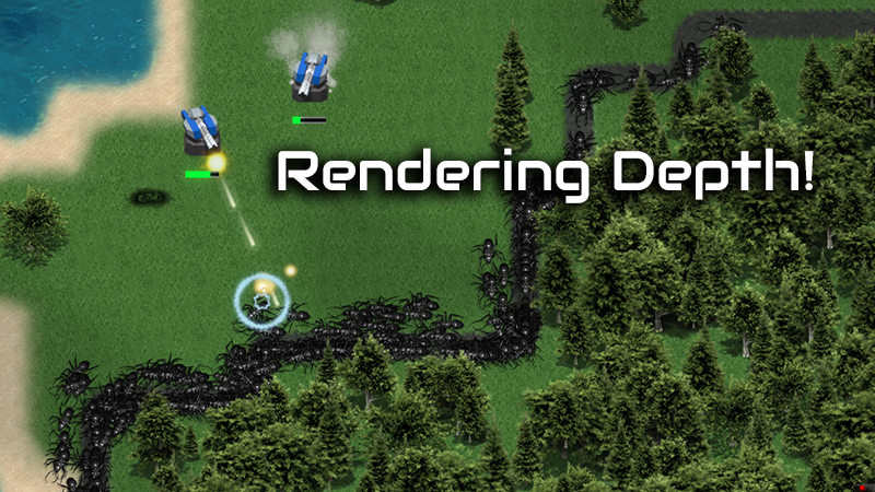 We've finally added depth to the game!... I mean, we've added literal depth to how this game is rendered. Bugs, turrets, you-name-it should now properly show-up behind trees and other structures correctly! It's not a huge difference until you scroll in, then you get to see the relenteless hordes marching through tree canopies and past shadows on their way to destroy your colonists! Aren't they adorable?