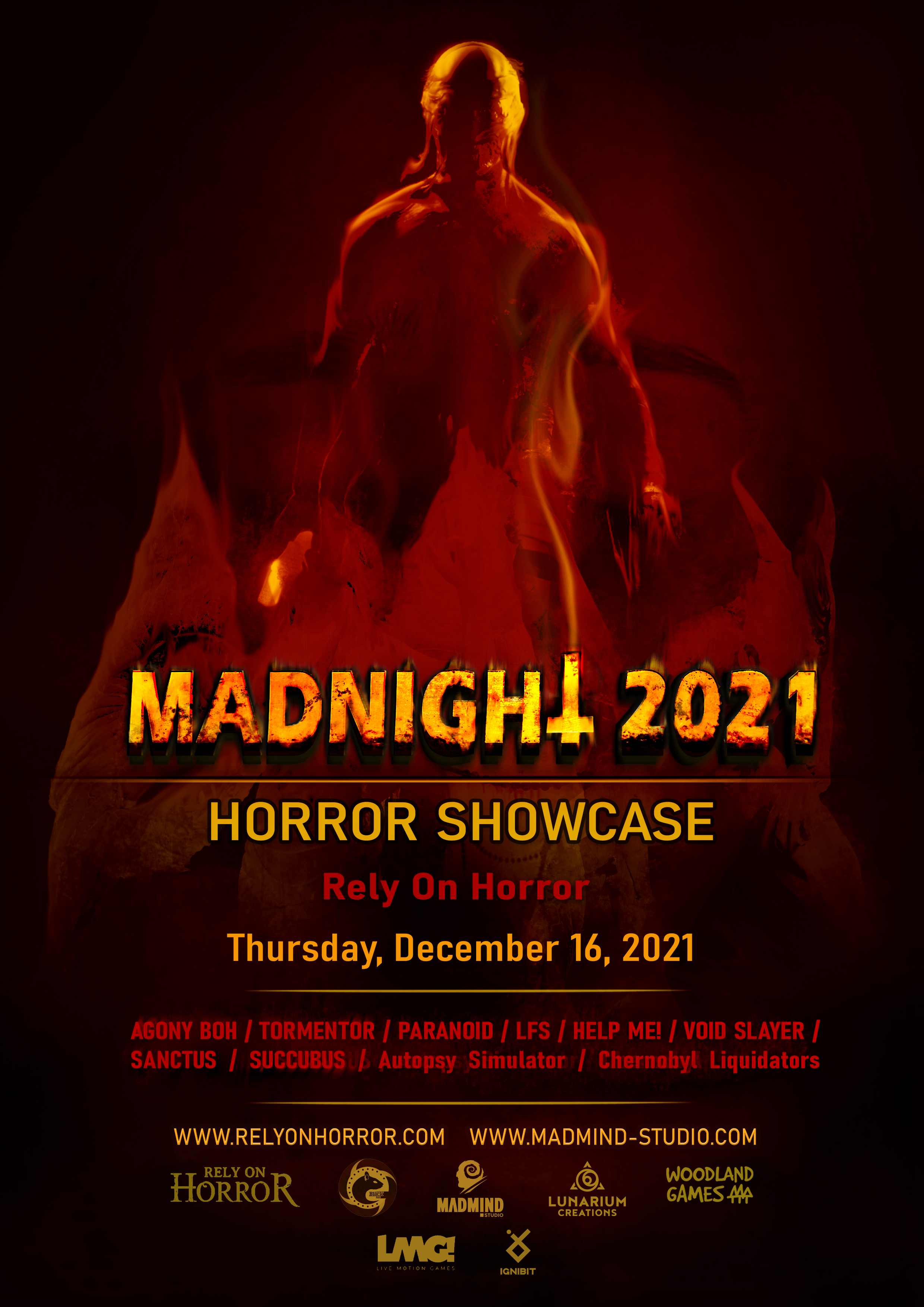 We would like to invite you to the video presentation organized together with Rely On Horror - "MADNIGHT 2021: Horror Showcase", during which new materials from the widely understood horror games produced by Madmind Studio will be presented, with guest participation of developers from other studios.