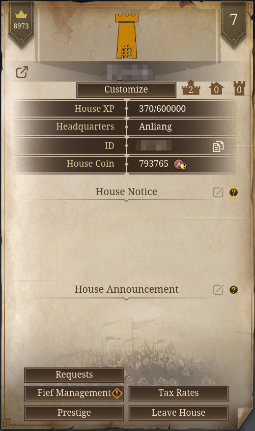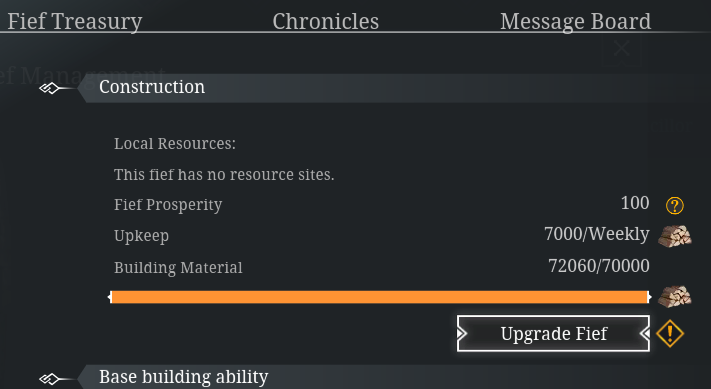 Permission to upgrade your house's fiefs will now be granted to the posts of Liege, Seneschal, Treasurer, and Marshal. This requires a fief to have enough resources, and house administrators will receive a notification of this in the Fief Management menu.