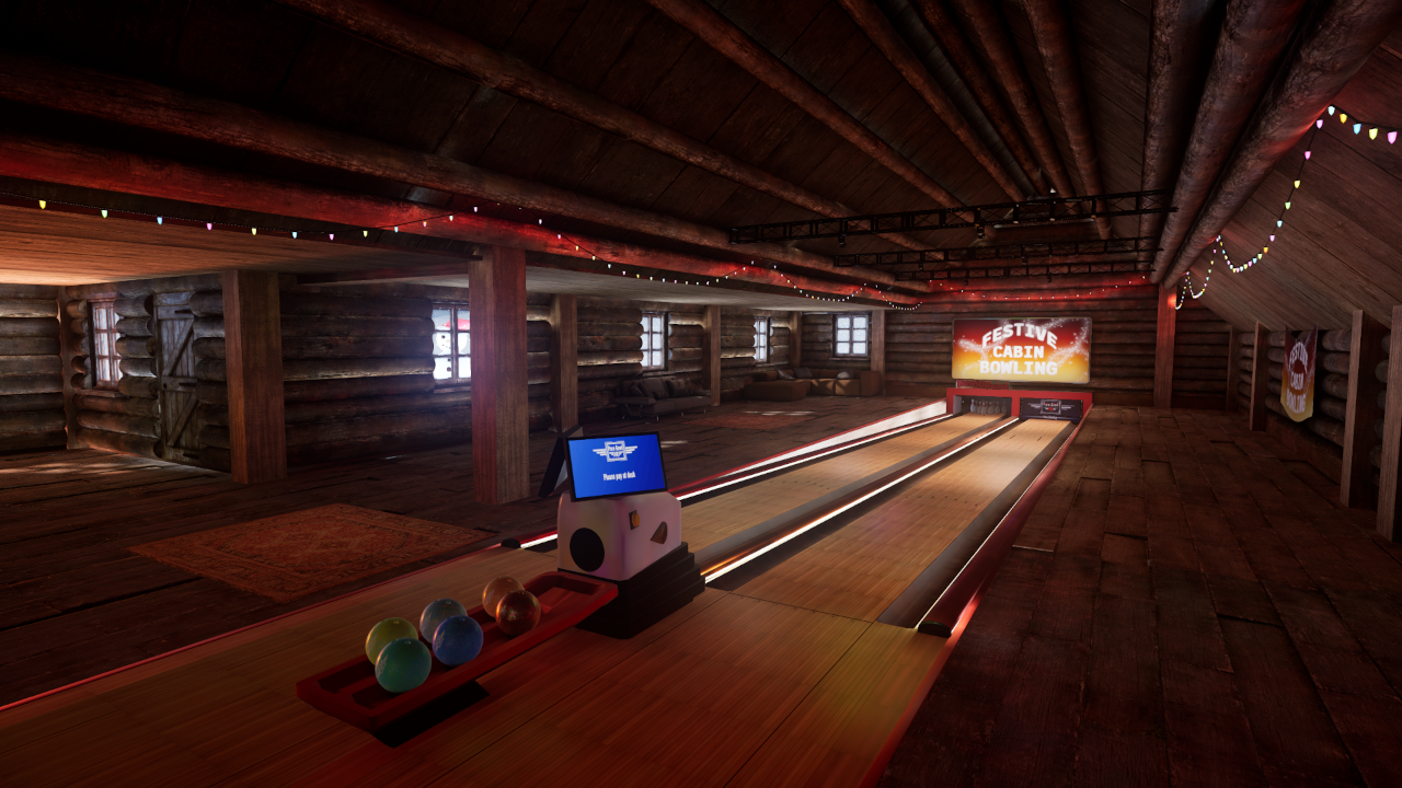 This is our big update for the holidays. We've got a brand new lane in a festive cabin, up in the snowy mountains. We've got a host of graphical improvements and polish in the existing lanes and the usual bugfixes and QoL improvements. And finally, we've added some decorations and snow in the lobby to help get you in the festive mood.
