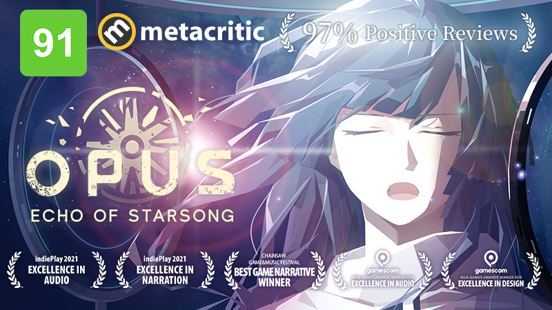 OPUS: Echo of Starsong has a Metascore of 91 on Metacritic. That's the same as The Witcher 3 and INSIDE!