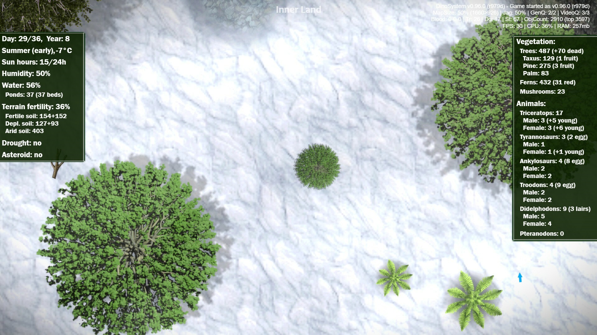 All graphics in DinoSystem have been upscaled and enhanced! Previously, zooming at max zoom, texture did appear extremely low resolution, especially dinosaurs and terrain; this has been fixed in v0.96.