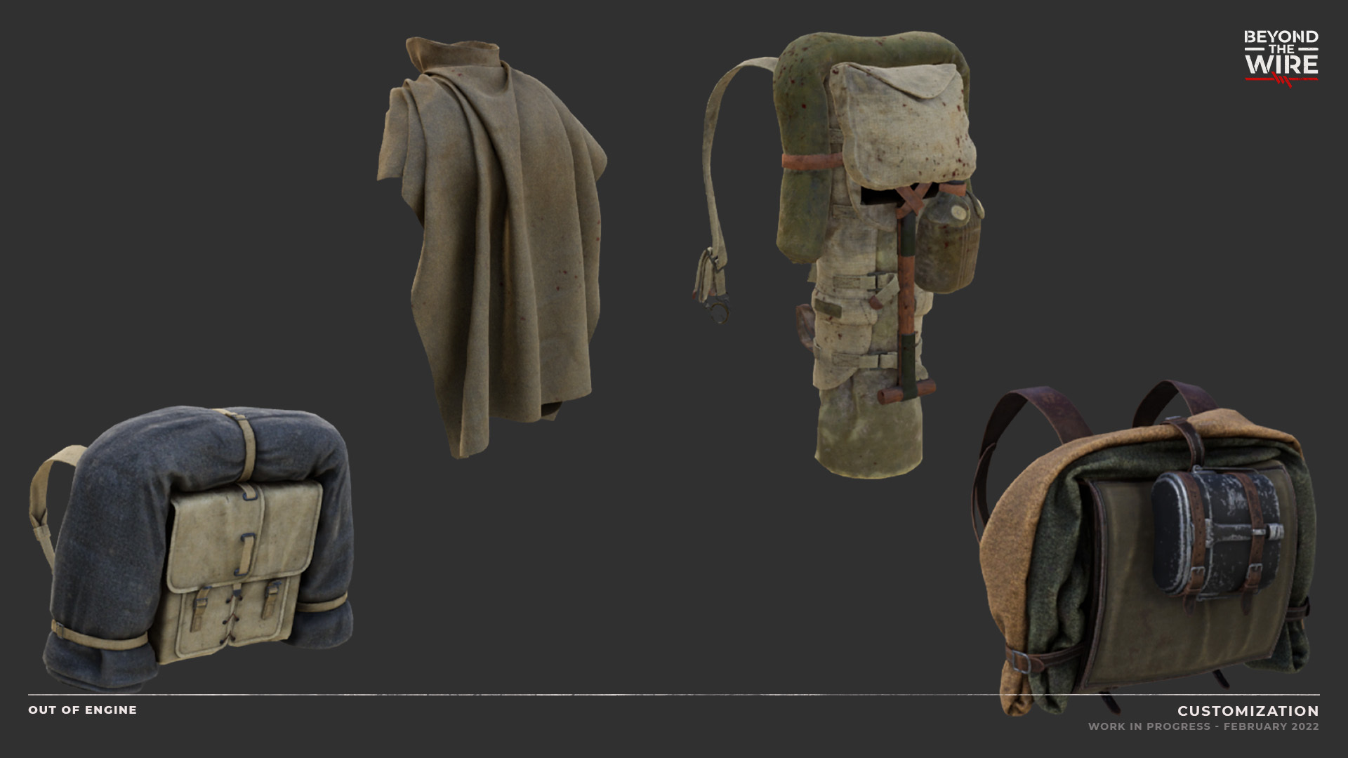 Work continues to build a large base of options for players with the new customization system arriving in our next Operation. Shown below are example of the types of webbing and backwear options players will have to customize their character model when the system arrives. With over 200 switchable items being introduced when it launches, you won't be short of adding a unique touch to your character. Also, we can finally reveal the full list of cosmetic items will cover your character's face, headwear, facewear, upper body, lower body, webbing, backwear and hand slots! Again we will have more information on this system as we move closer to it's initial release.