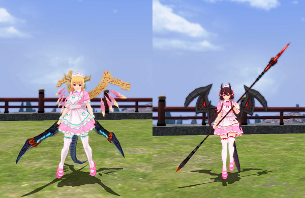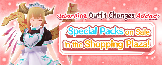The Valentine packs will include the following items: ・Outfit Change - Valentine Apron x1 ・Limited Gacha Ticket x5 ・Weapon Grade + Powder x2 ・Max Durability +500 Ticket x2 ※Limited Gacha Ticket will be removed in a future update maintenance, so please use the tickets soon after acquisition.