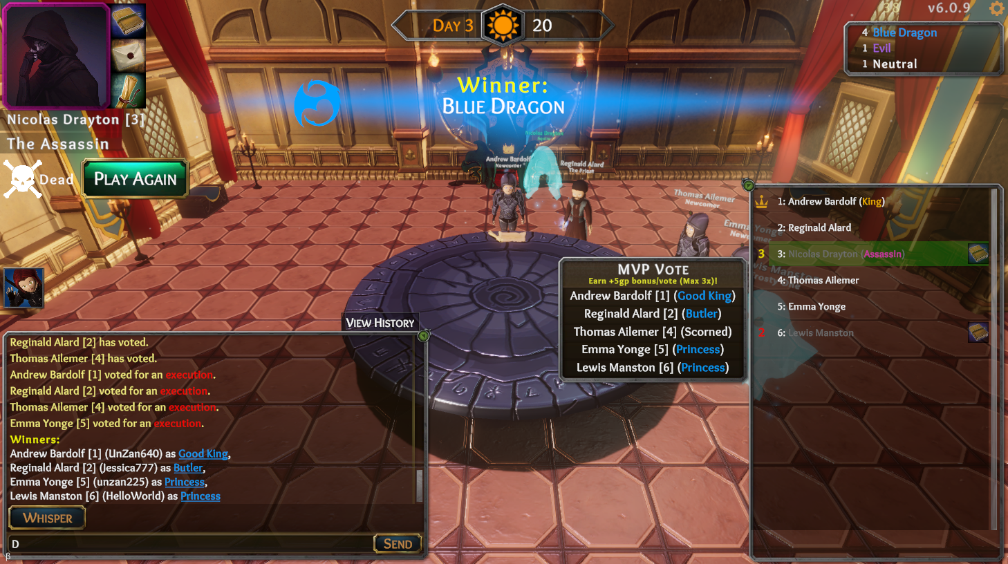 - (***NEW)Optimizes the flow of joining a new game! Added a play again button. If you got killed, then feel free to join a new game. After a finished game, you can also play again!