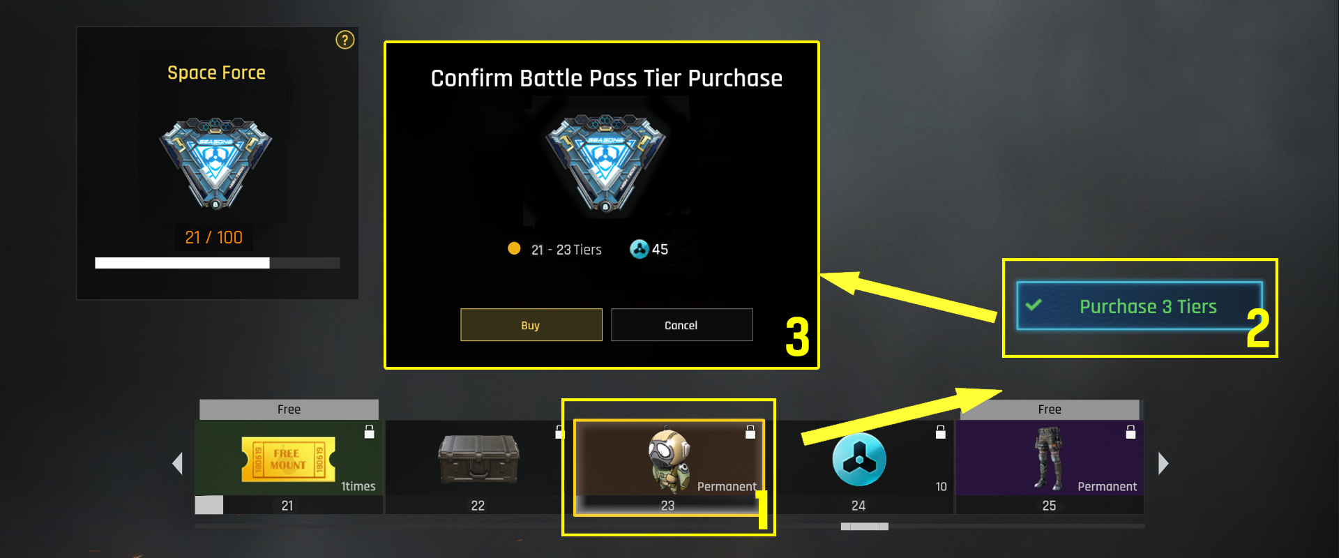 After buying the Battle Pass, you will have the option to purchase as many tiers as you want using Chips. (Each tier costs 15 Chips)