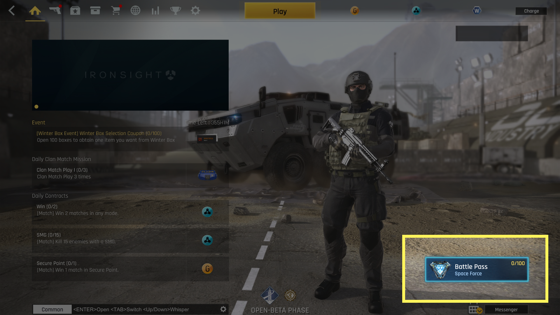 You will progress through the Battle Pass as you earn XP in Ironsight. The bar at the bottom of the Battle Pass screen displays your current progress.