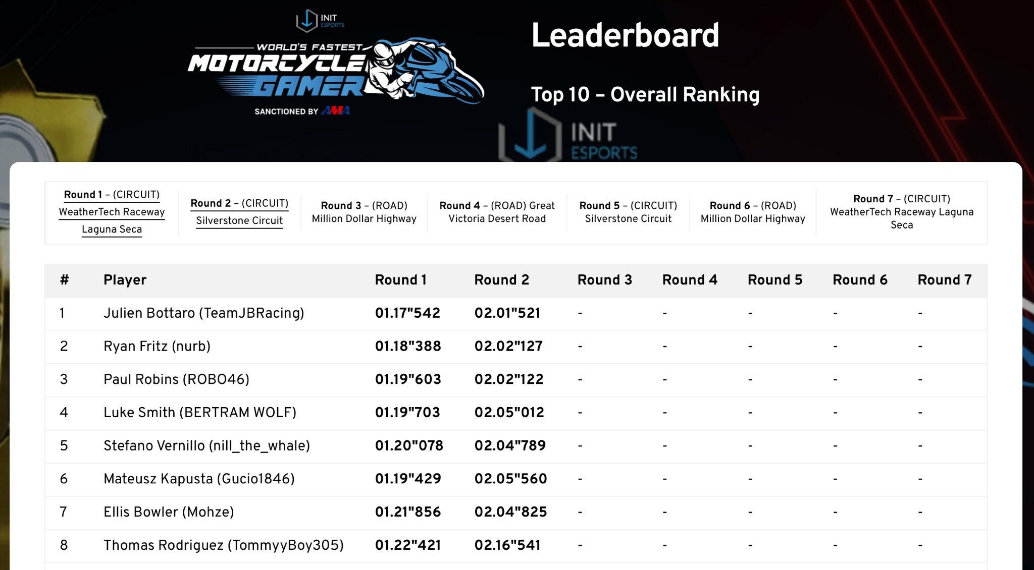 A new round of our Esports competition 'The Worlds Fastest Motorcycle Gamer' in partnership with Init Esports has seen some fierce times at the top of the leaderboard.