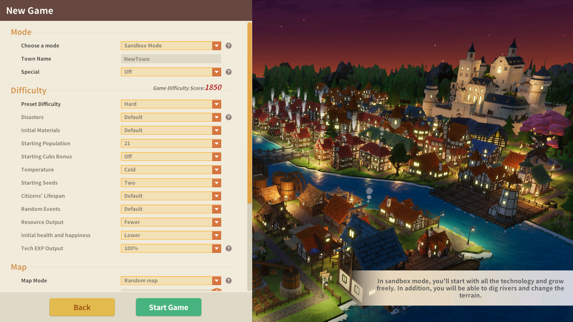 Can choose preset map - Easter Island on Standard Mode and Sandbox Mode.