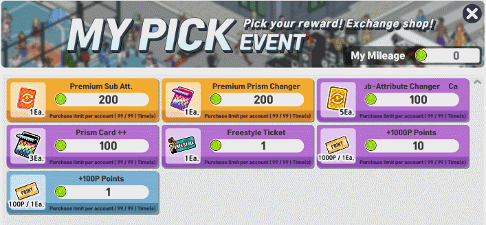 In every draw, you will receive a Mileage Coin to exchange various items.