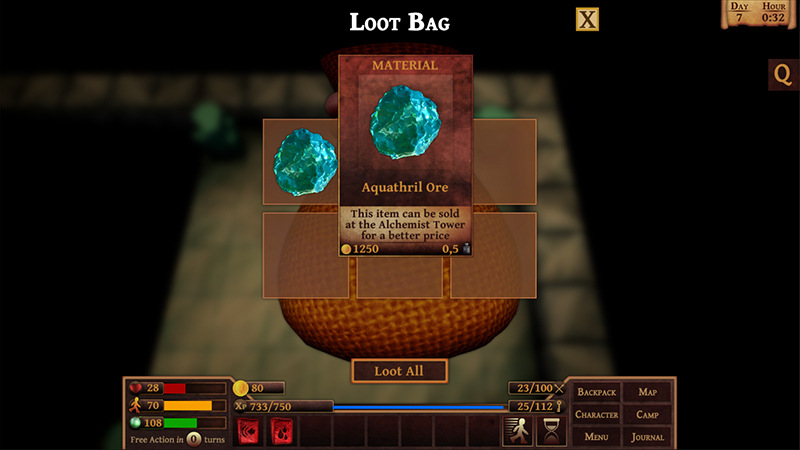 After leaving the dungeon, cultists or bandits may come after our hero (like most of the time when we have something valuable in our backpack). They want that precious gemstone too. Hero can give it to them to avoid unnecessary combat or be loyal to his word and fight for it.
