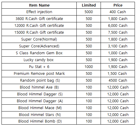 3) Happy Hour event(When you stay at the server at this time, you will get rewards) - 18:30 : 1st Gacha Ticket(1EA) - 19:30 : Item Extract - 20:30 : 500 R.Cash Gift certific