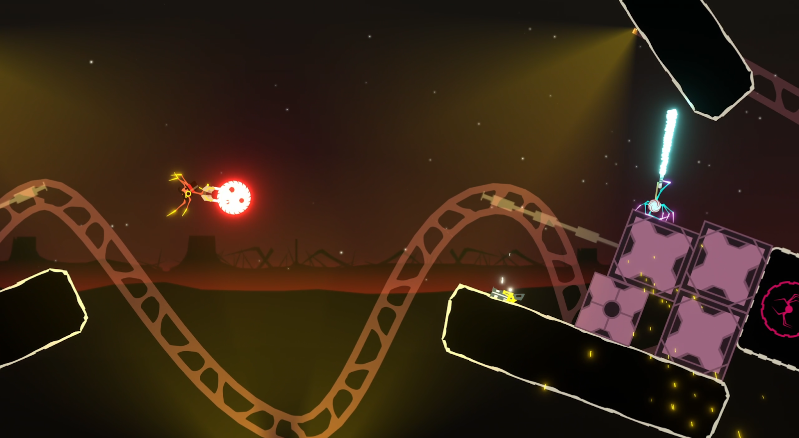 You will have to fight on platforms that resemble swings on this map. Pushing your friends into lava is now easier than ever.