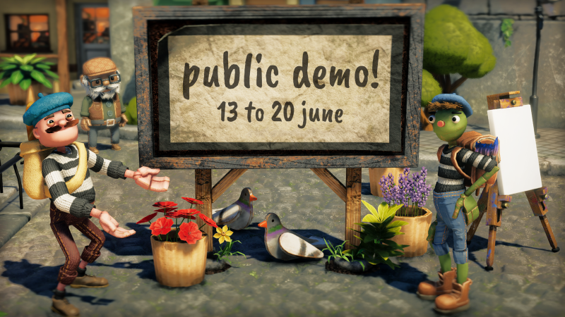 The demo will be available to play on Steam June 13th-20th! We’ve been working hard with trimming brushes, mixing paint and wiggling them puppets and we hope you’ll have a blast with it! It’ll be time exclusive so don’t miss this chance to check out the game and give us all the juicy feedback of what you love and hate (or maybe what you’re just luke-warm to).